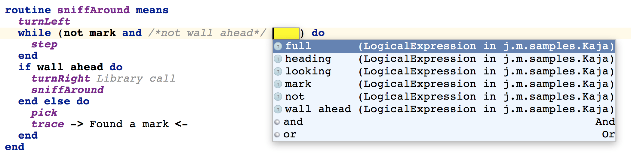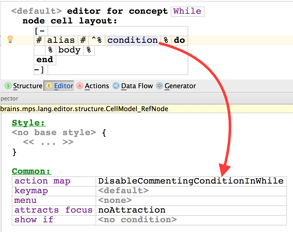 For example, if we want to prevent the user from commenting out conditions in the robot's Kaja While statement, we attach the above action map to the While editor's cell representing the condition :