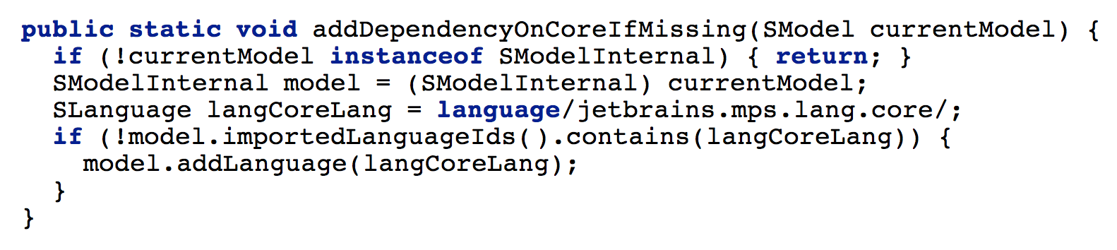 MPS provides a universal way to comment out nodes in models. In previous versions this functionality had to be implemented in all languages separately, either through node attributes or dedicated comment nodes. Since MPS 3.3 the information about a node being commented out is stored in the model in a generic way. The smodel language ignores commented out nodes by default so that your queries do not have to filter out commented out nodes explicitly.