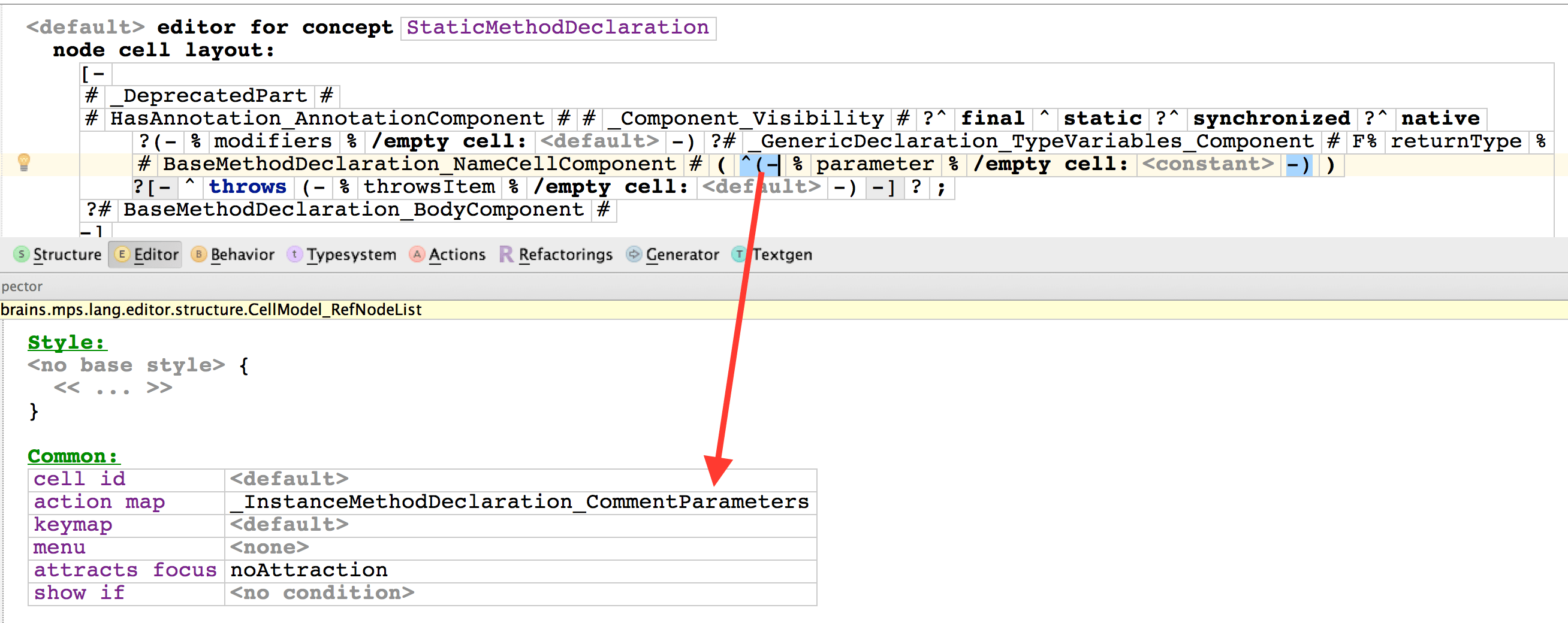 The next applicable editor cell simply removes the comment hint and redirects the request to find the original editor of the concept (IfStatement). This avoids the need for repetition of the editor definition. You may further simplify the task, if you define a single editor bound to the comment hint for a common super-concept - this way all sub-concepts will get the customized comment editor.
