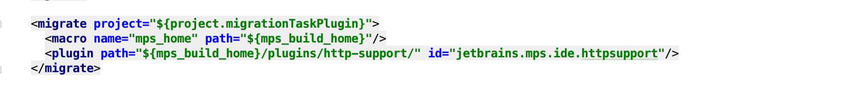 Nevertheless, users can write their own project migrations. There's no special language for project migrations, so they are basically written as Java/BaseLanguage classes and are contributed through plugin.xml. So' further we'll suppose that you already have an MPS plugin and write the project migration in it.
