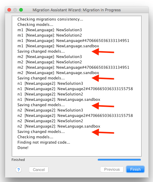 If the user triggers the migration, the project is fully migrated. In case of problems preventing the migration, a list of problems together with the list of not migrated code is presented to the user.
