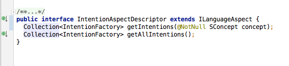 Now, let's suppose we would like to use some of the aspects. E.g. while working with the editor, we'd like to acquire a list of intentions, which could be applied to the currently selected node.