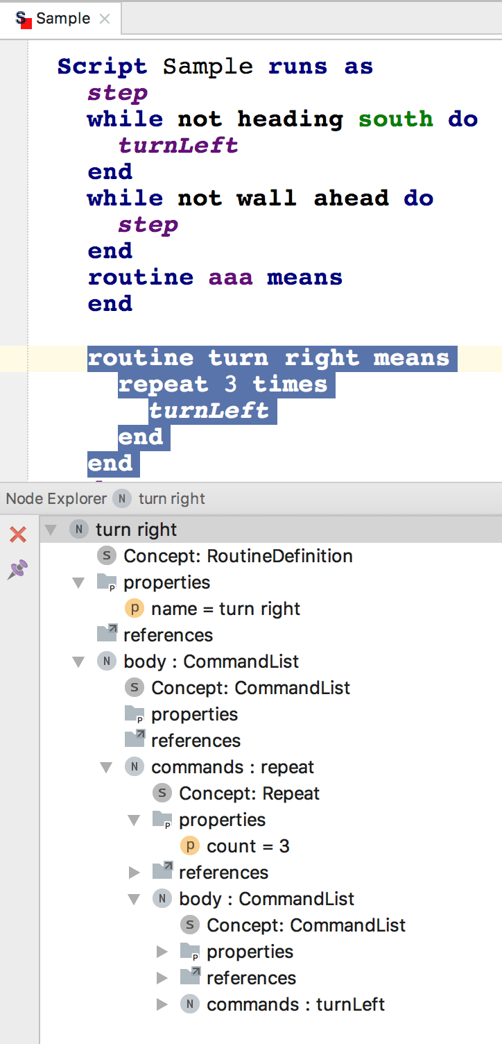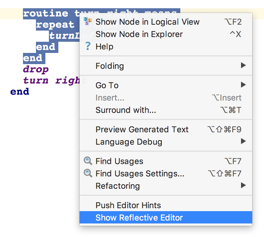 The Alt/Control + X keyboard shortcut gives the user a way to visualise the AST that represents the piece of code that has been selected in the editor.