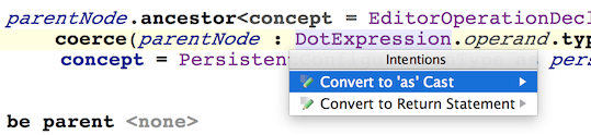 Once we've checked a node's type against a concept, we usually want to cast an expression to a concept instance and access some of this concept's features. To do so, the following syntax should be used: