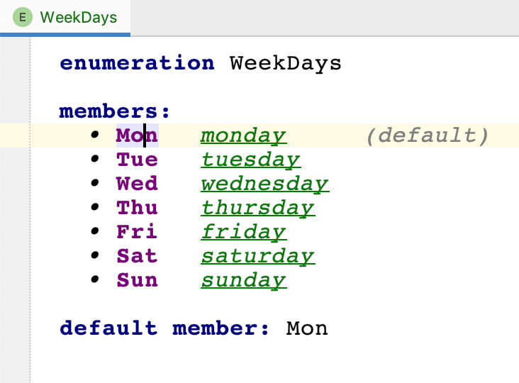 Aside from a set of members, each enumeration can optionally define the default member. You can consider a default member as an implicit value that is present for all properties for which there is no other value is explicitly set.