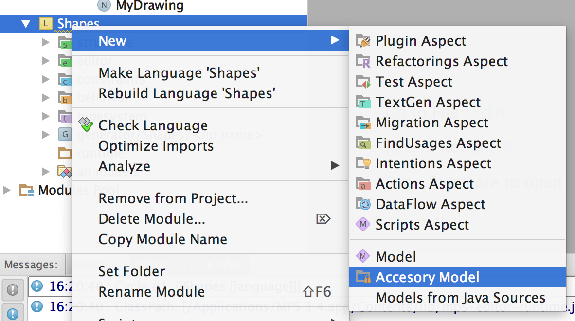Following the same steps, you need to right-click the Structure aspect of the language and add a new concept. Name it Circle.