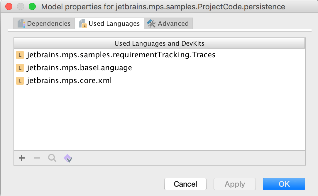 On top of the languages used for development the models must import the Traces language in order to define requirement traces.