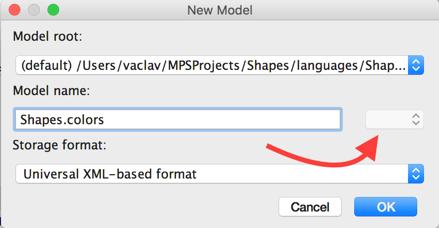We should give the Concept a descriptive name, Shape in our case will work fine. So just type Shape where MPS indicates a missing name - the red <no name> field.