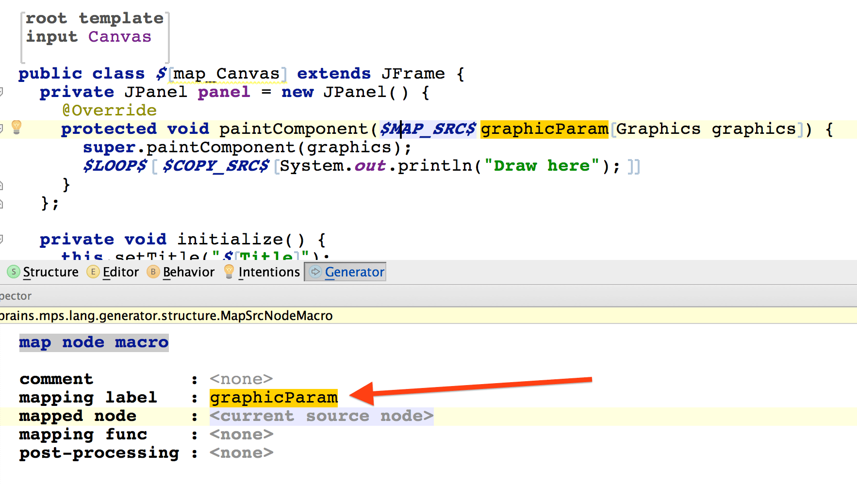 Wrap the parameter declaration (including the type) with the MAP_SRC macro (Alt+Enter, pick node macro, type MAP_SRC_) . Down in the _Inspector window you then select the mapping label to use for storing the generated parameter declaration. The current source node, which is an instance of the Canvas concept, will be used as the key to identify the generated graphics parameter declaration in the mapping label.