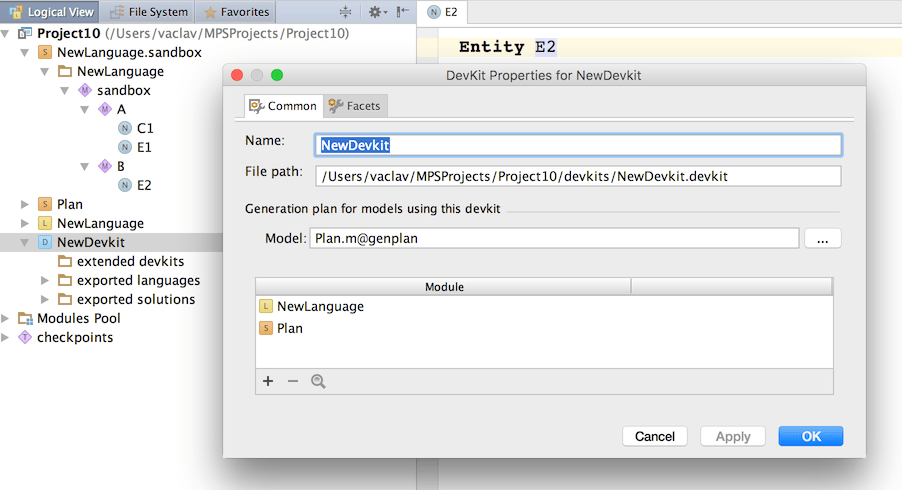 There is also a shortcut to provide a genplan to models without the ndded for a DevKit, which can be used for quick experiments and prototyping. Modules that should have their models built following a generation plan need to enable the Custom generation facet and point to the actual required generation plan: