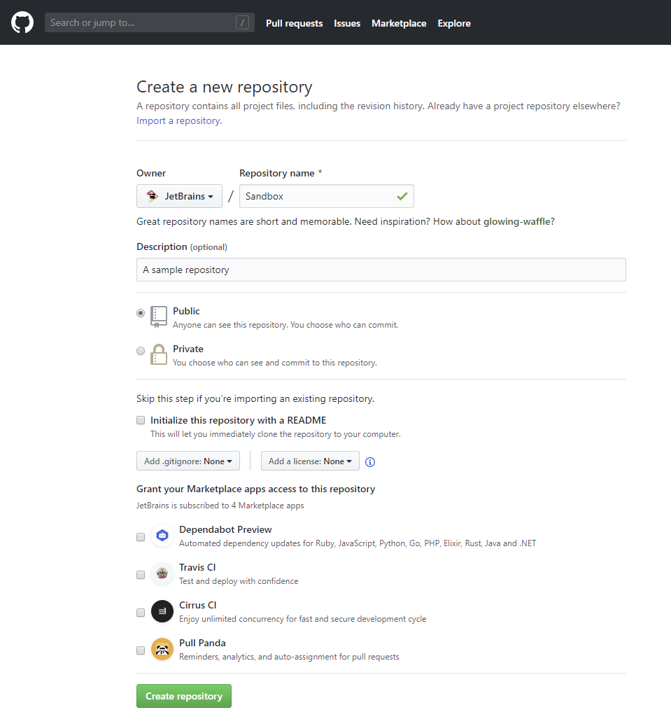 Let's use GitHub — arguably the most popular Git hosting service — to create a remote repo for our example.