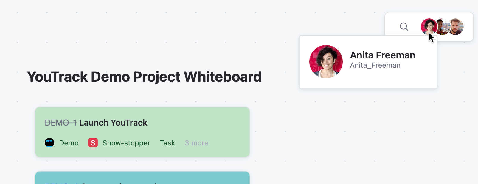 Whiteboards in YouTrack are for collaboration, allowing multiple users to contribute and make changes in real time. Whether it's brainstorming, planning workflows, or organizing tasks, whiteboards ensure that everyone stays aligned in a shared workspace.