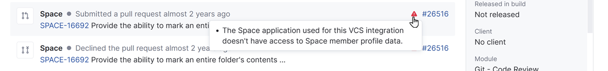 If the author of the commit message cannot be found in YouTrack, the command is not applied. The username is shown in red text on the VCS changes tab. The warning tooltip provides information that you can use to fix the problem.