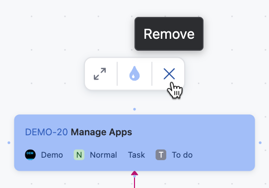 Delete toolbar action for issue and article cards. Removing an issue or article card only removes the card from the whiteboard and doesn't delete the issue or article in YouTrack.