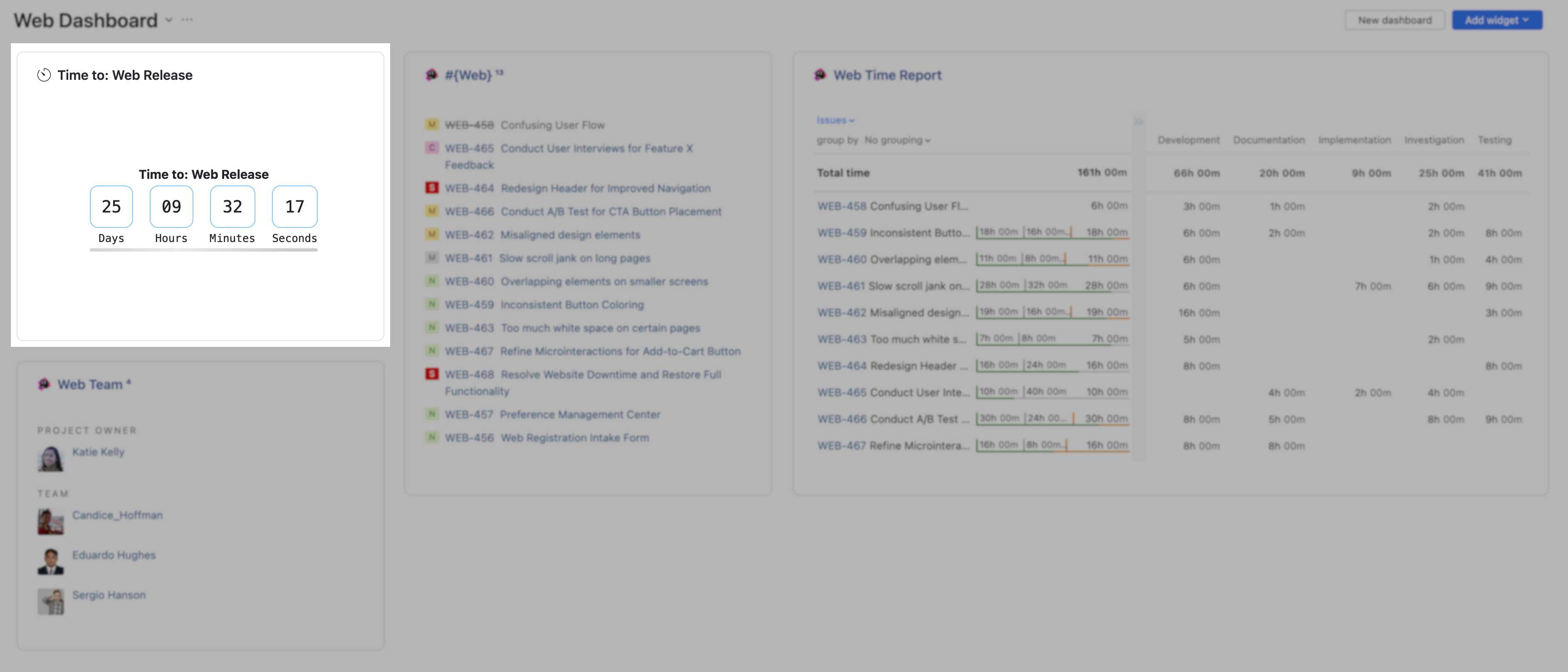 To add a new Countdown widget to a dashboard: