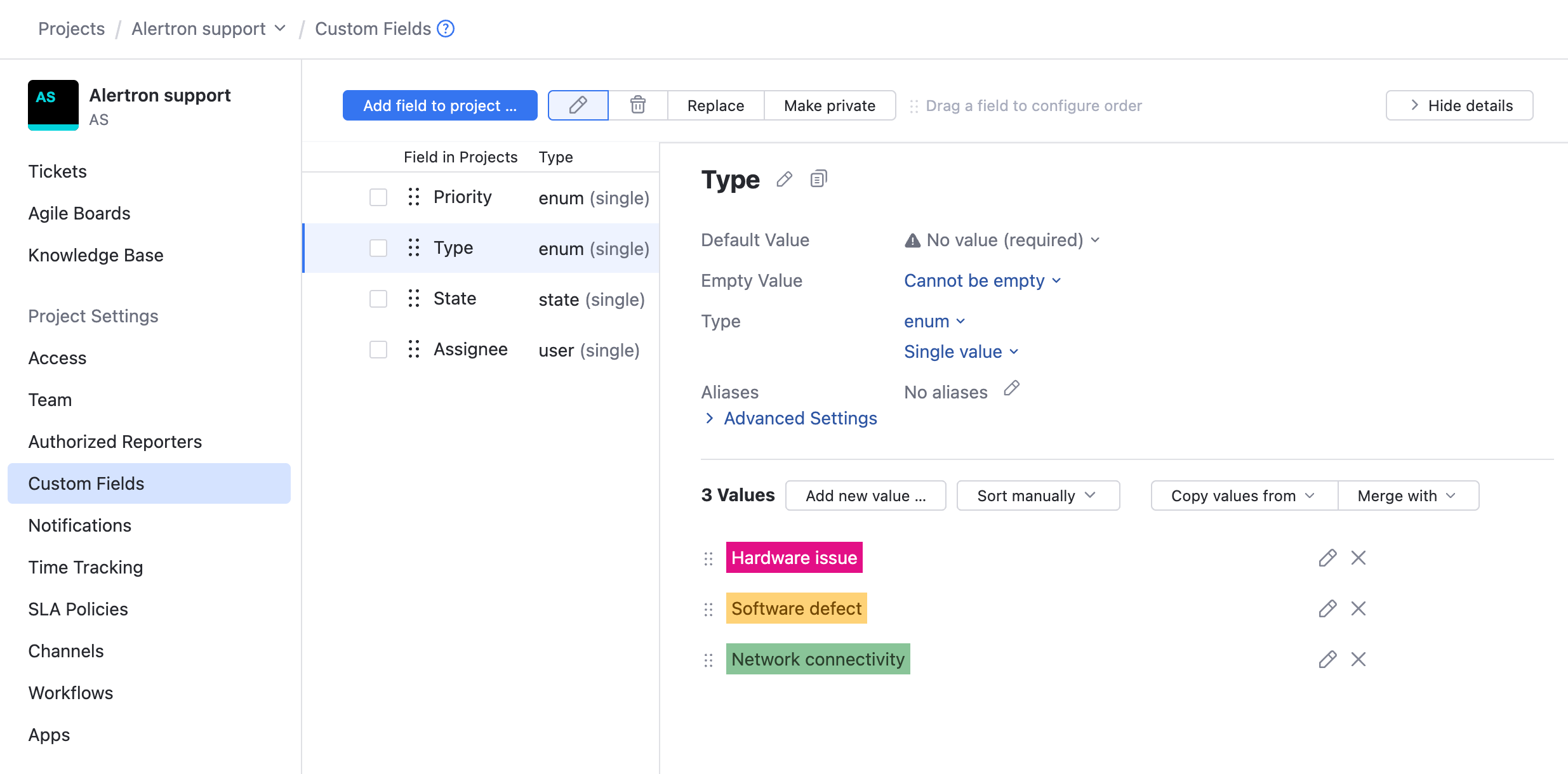 Customize the set of fields used for tickets in the project.