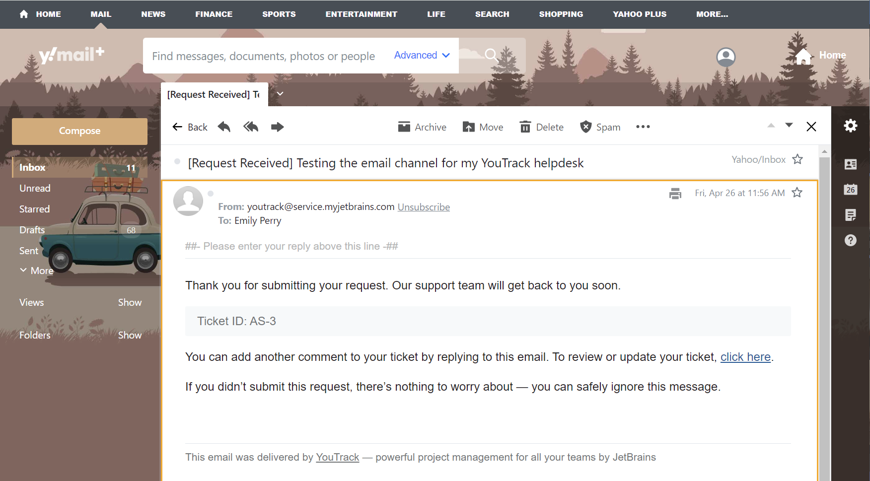 For each test message you send, YouTrack sends a confirmation email to your test account's inbox. Once you have tested all your channels, open your inbox and review each message.