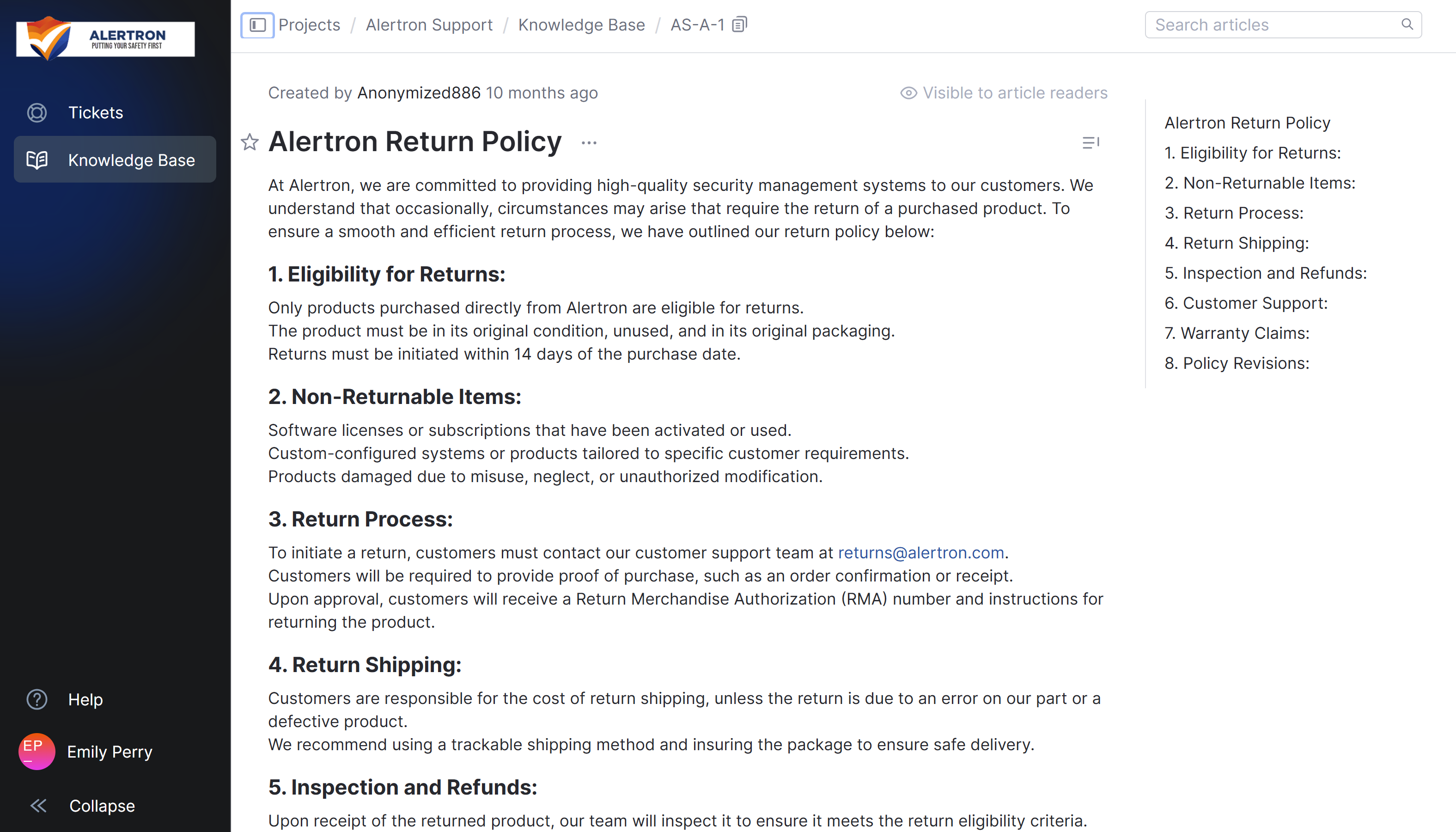 You can also use public articles to describe your policies for handling specific types of requests and outline your service-level agreements.