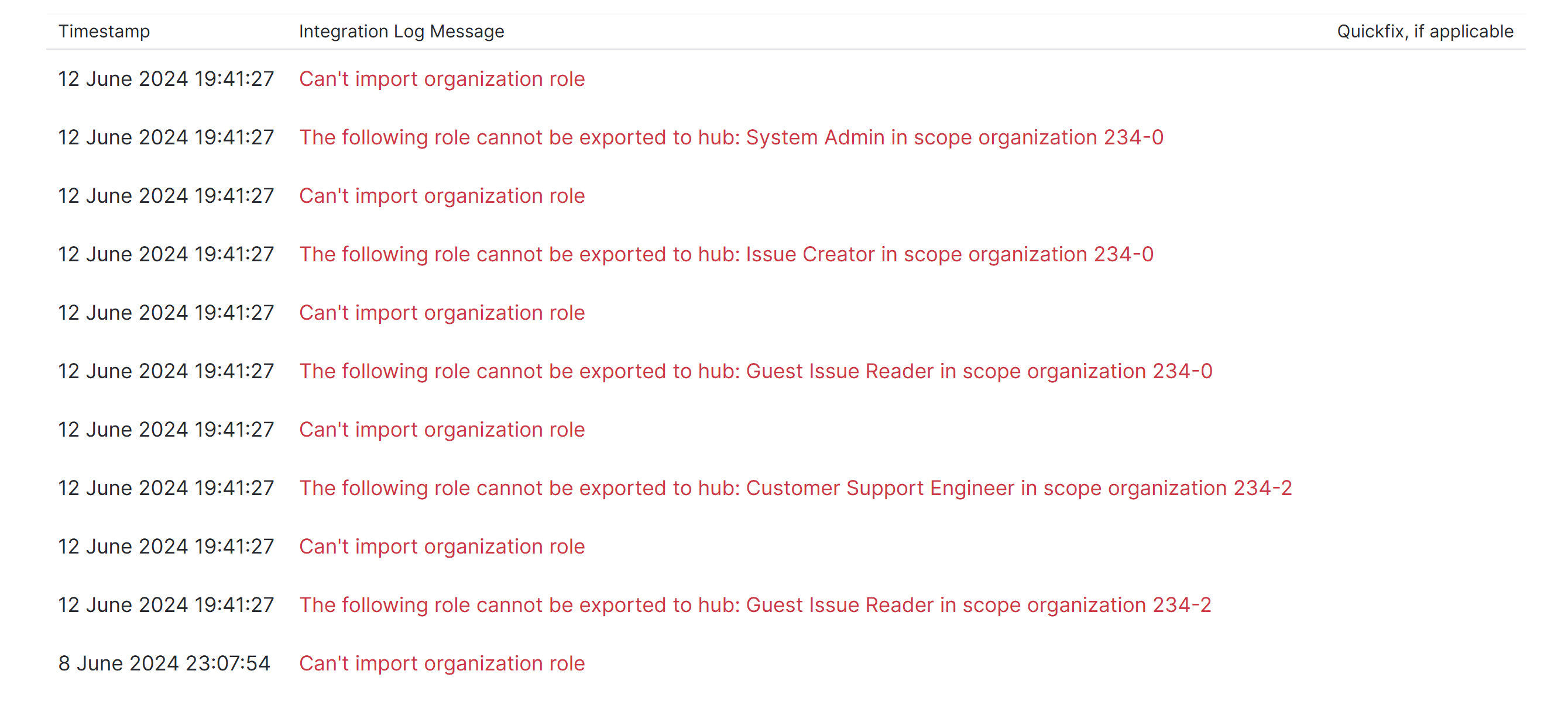 3. If applicable, apply the quick fixes that are suggested in the Integration Log.