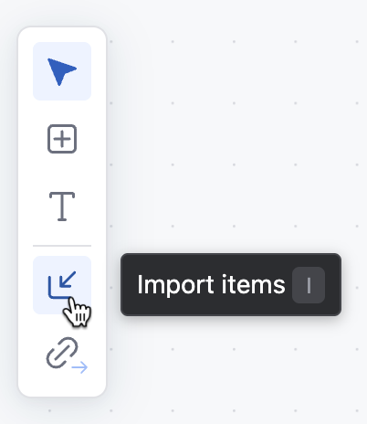 You can add existing items to a whiteboard using the Add existing items action in the toolbar. When you select this option, YouTrack opens the Add Items dialog box, where you can search for specific items and add them to the whiteboard as cards.