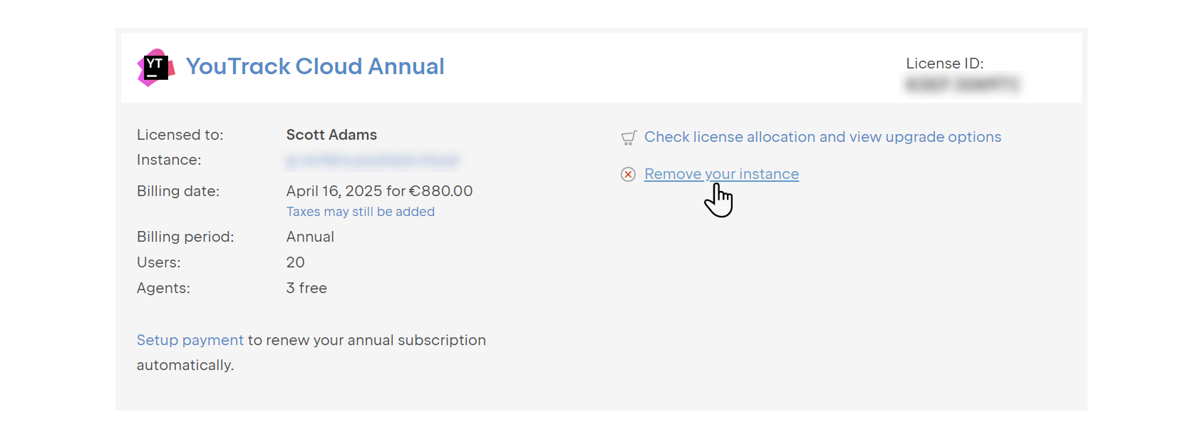 If you no longer use YouTrack Cloud, you can cancel your subscription. You may want to cancel your instance for one of the following reasons: