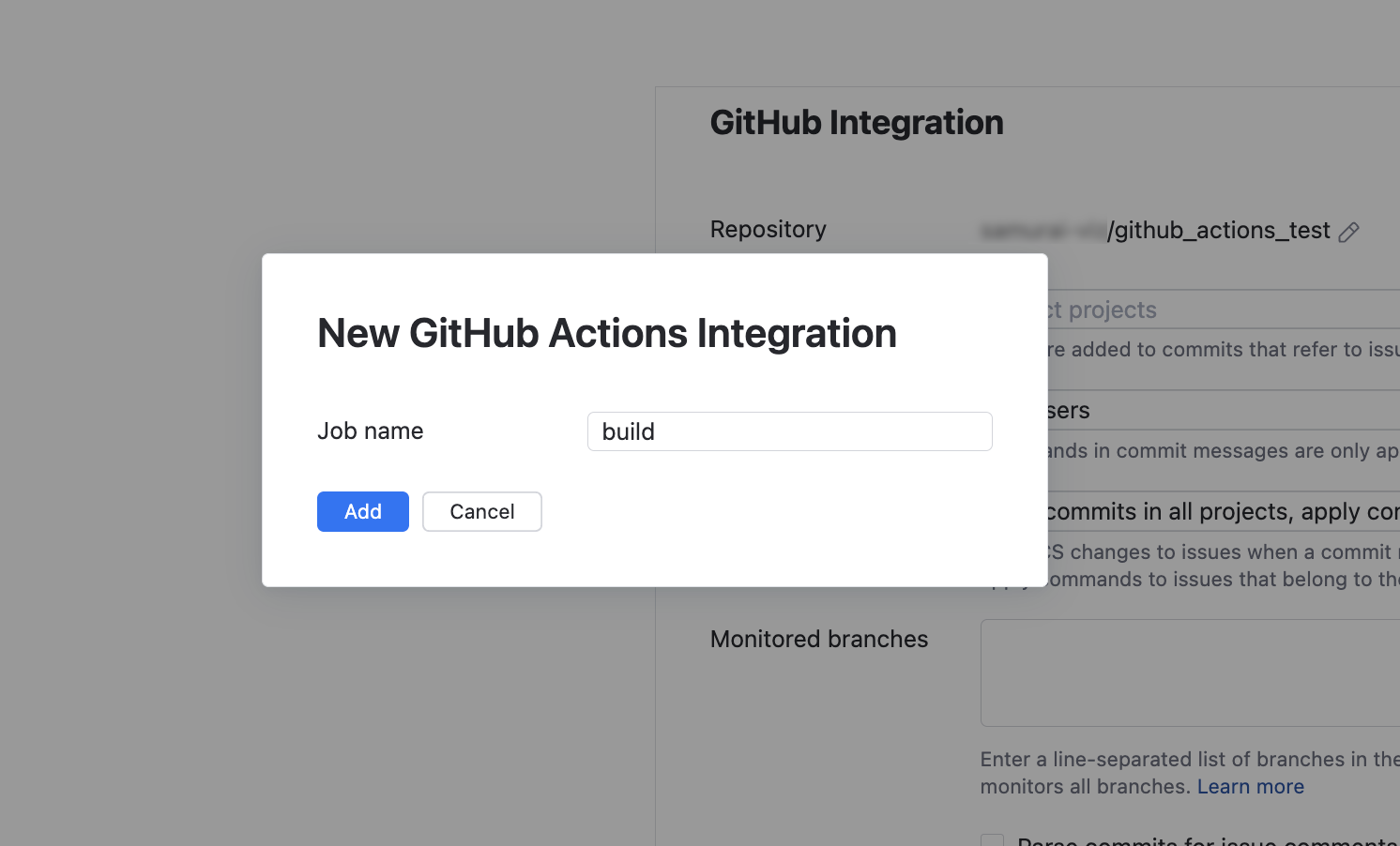 Each integration job must match an existing job in GitHub Actions by name. You can define integration jobs in the settings of an existing GitHub integration.