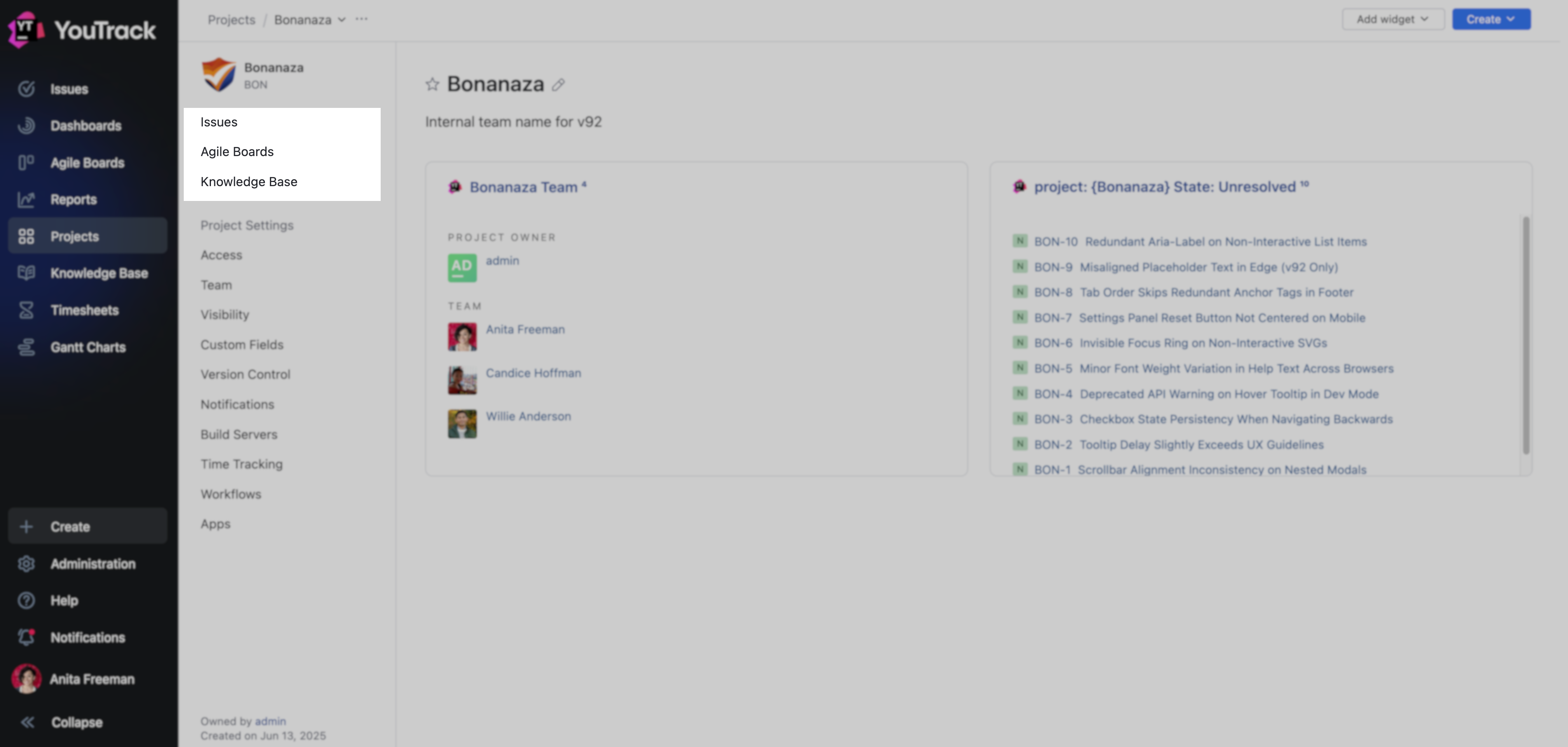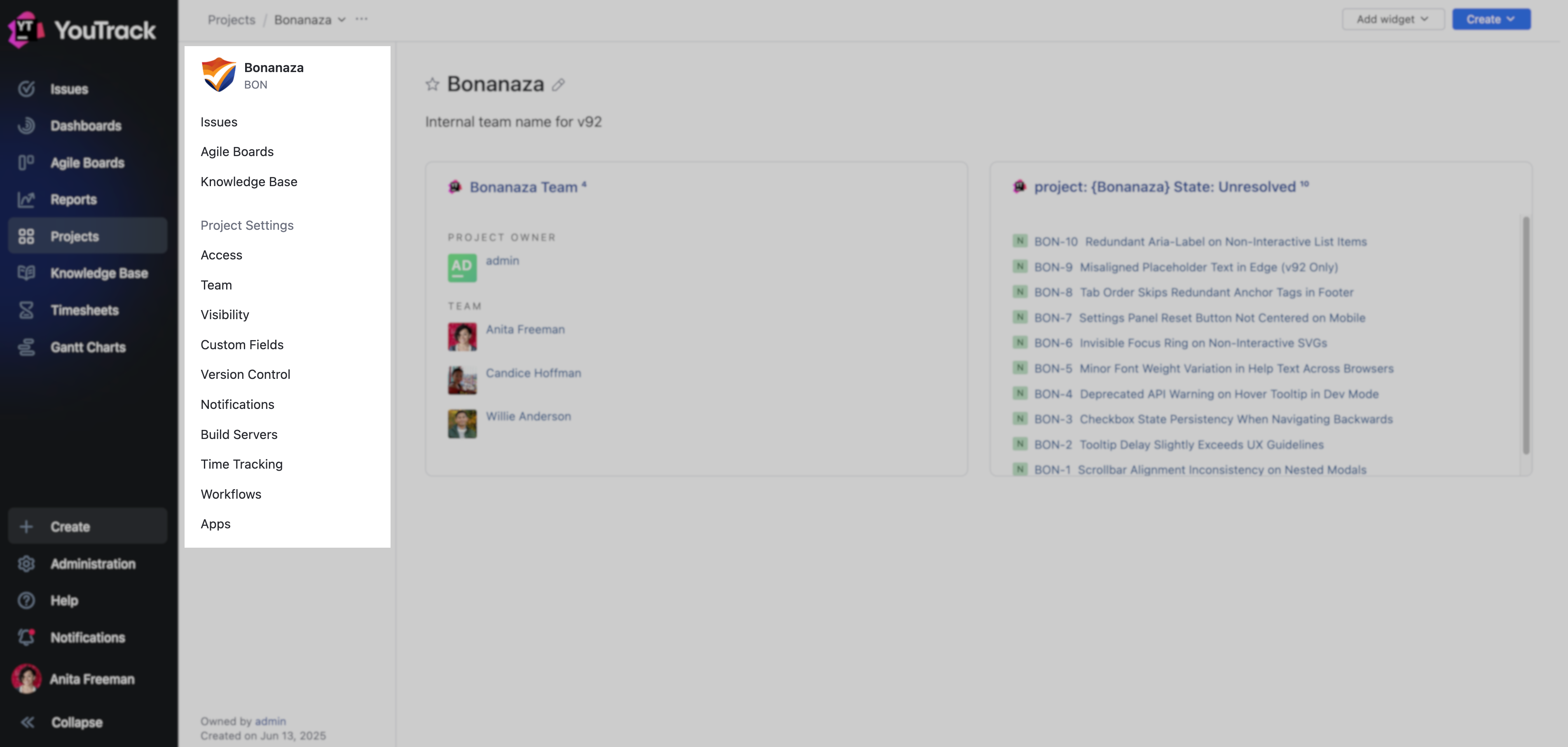 YouTrack's project-centric navigation helps you focus on a specific context for your work, minimizing distractions from unrelated content.