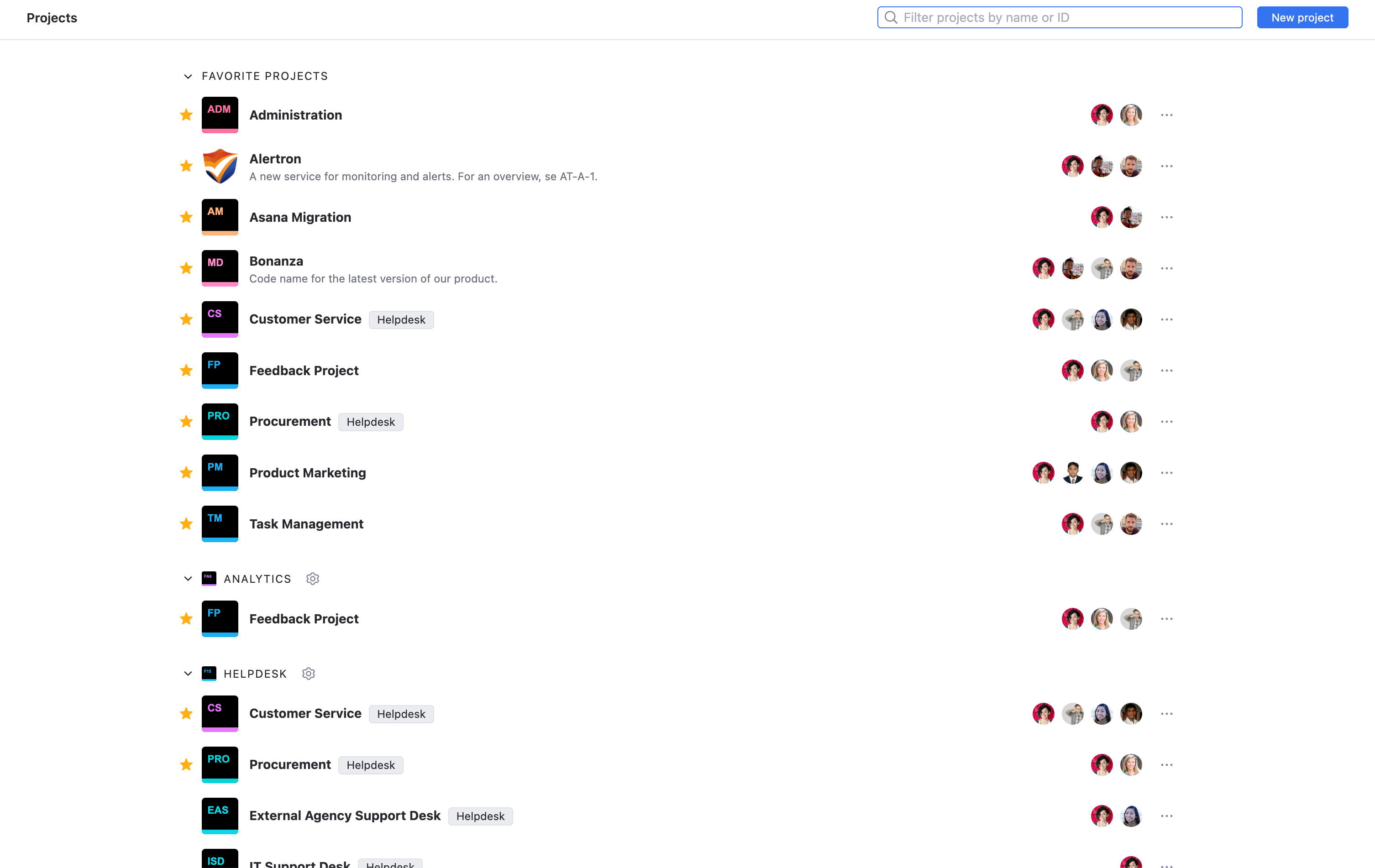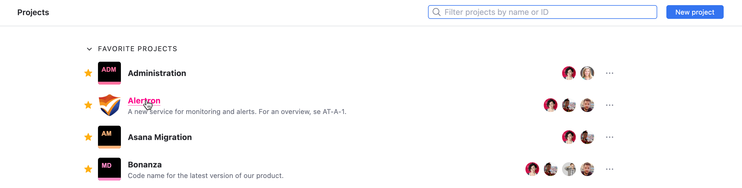 Favorites | Any project that you've marked as a favorite is displayed at the top of the projects list as well as at the top of the list in its respective section.