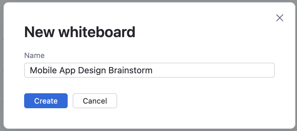 3. Enter a name for the new whiteboard like "<Feature> Design Brainstorm", and click Create.