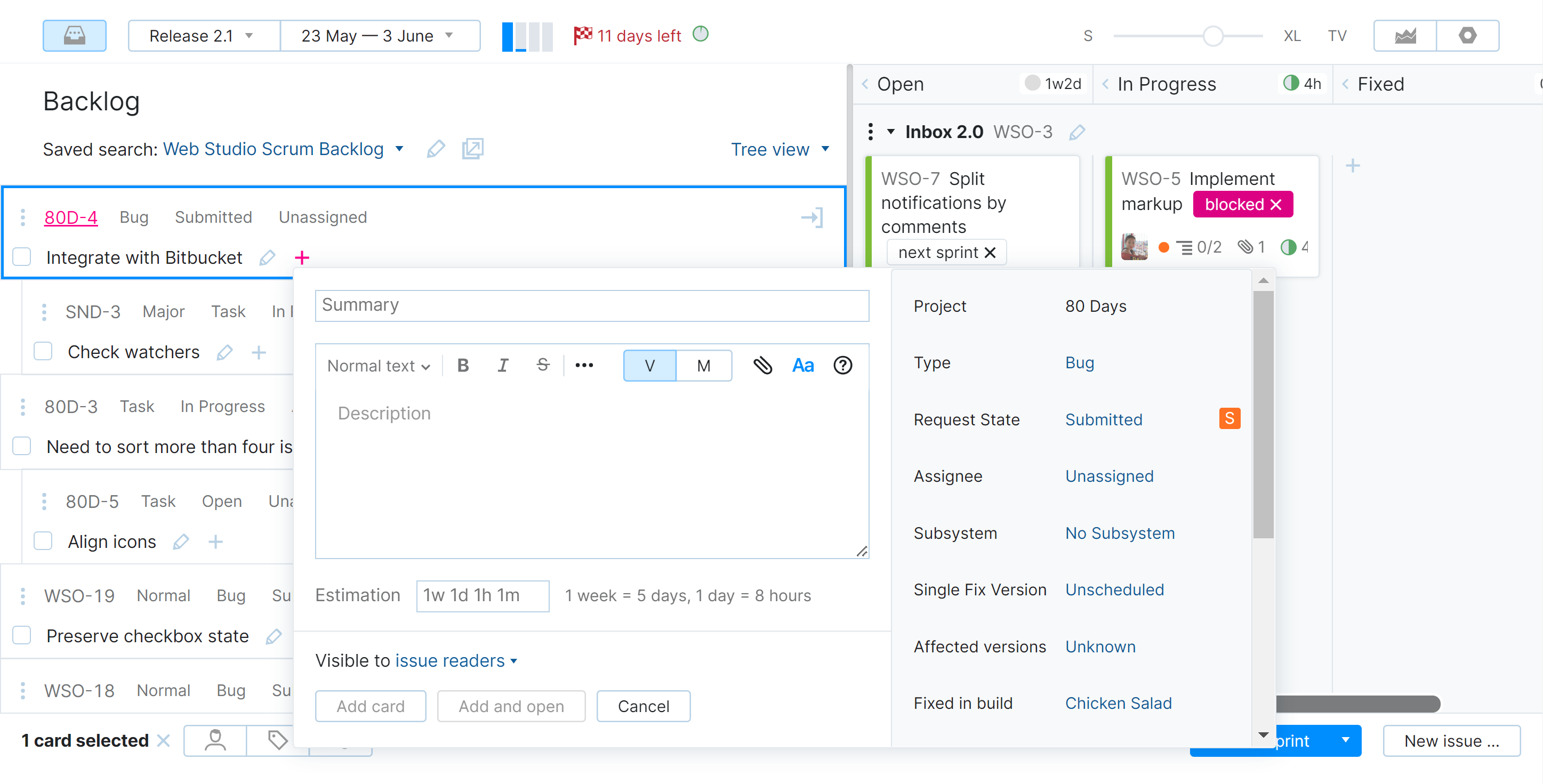 However, if you're reviewing issues in the backlog as a team for planning, grooming, or refinement, you can easily add issues to the backlog without leaving the agile board.