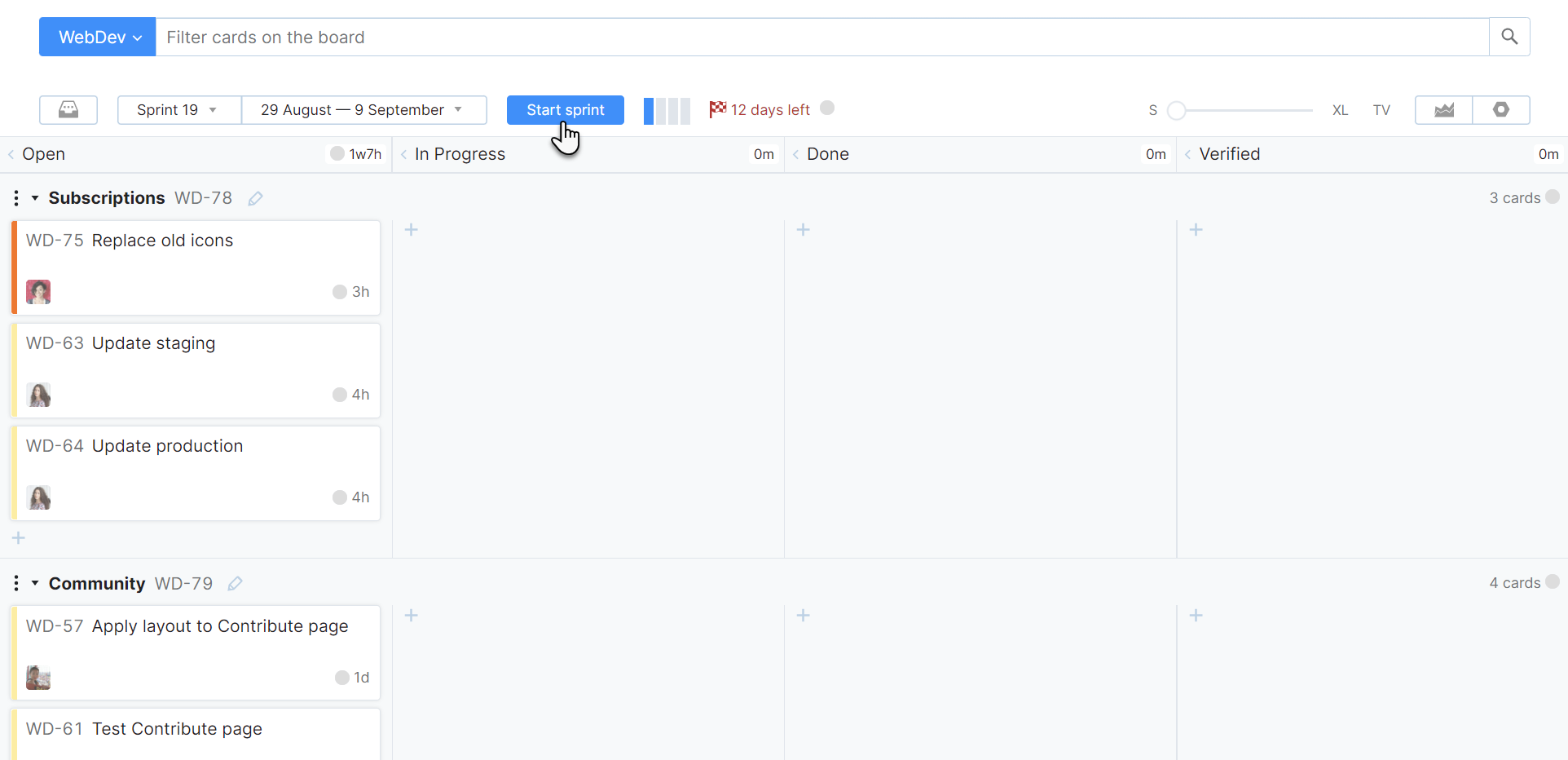 Whenever your team is ready to get to work, just click the Start sprint button in the toolbar.