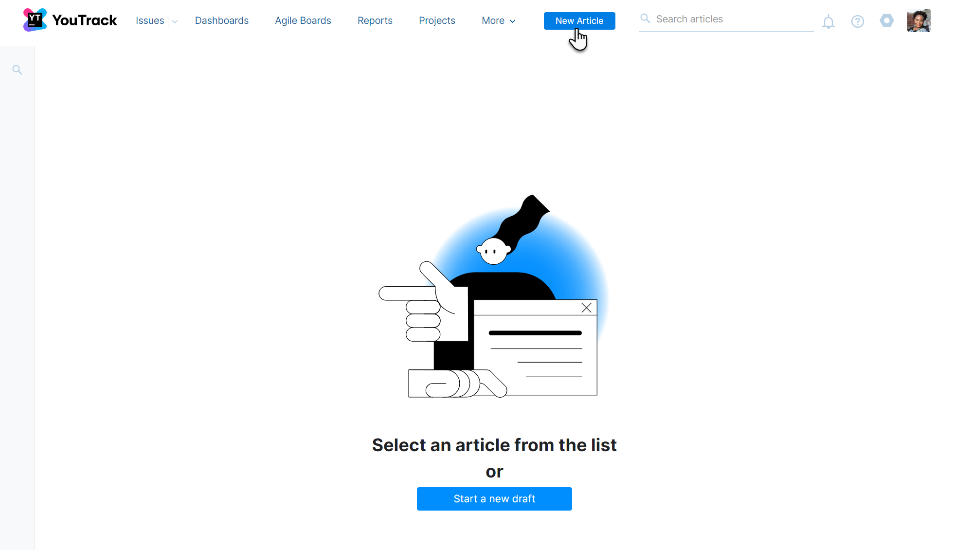 Click the New Article button, which is also located in the header.