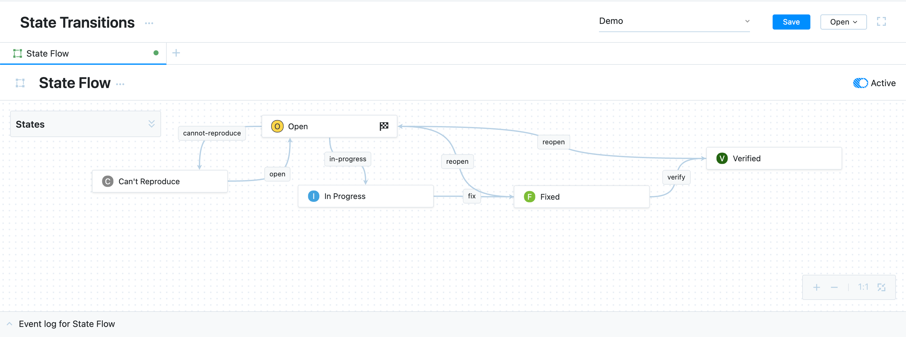 The Open state is set as initial. This means that all new issues will be created in this state.