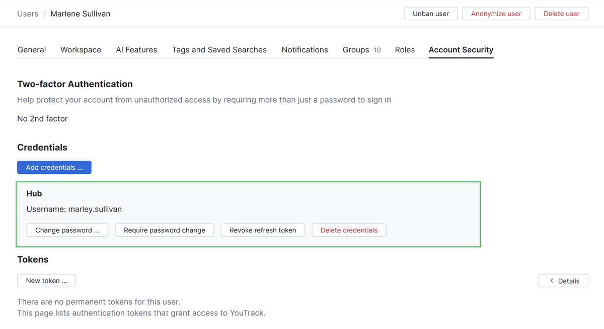 You can add a username and password to an existing YouTrack account as a new login. If a user has deleted or disabled an existing login, you can provide the user with a new set of credentials and add them manually to the user profile. The user can then log in to YouTrack with the new credentials. However, they are required to change the password immediately.