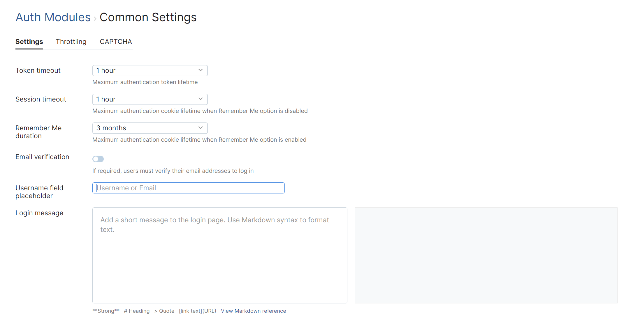 When the Throttling option is enabled, there are additional settings that manage how throttling is applied to logins and requests to verify credentials.