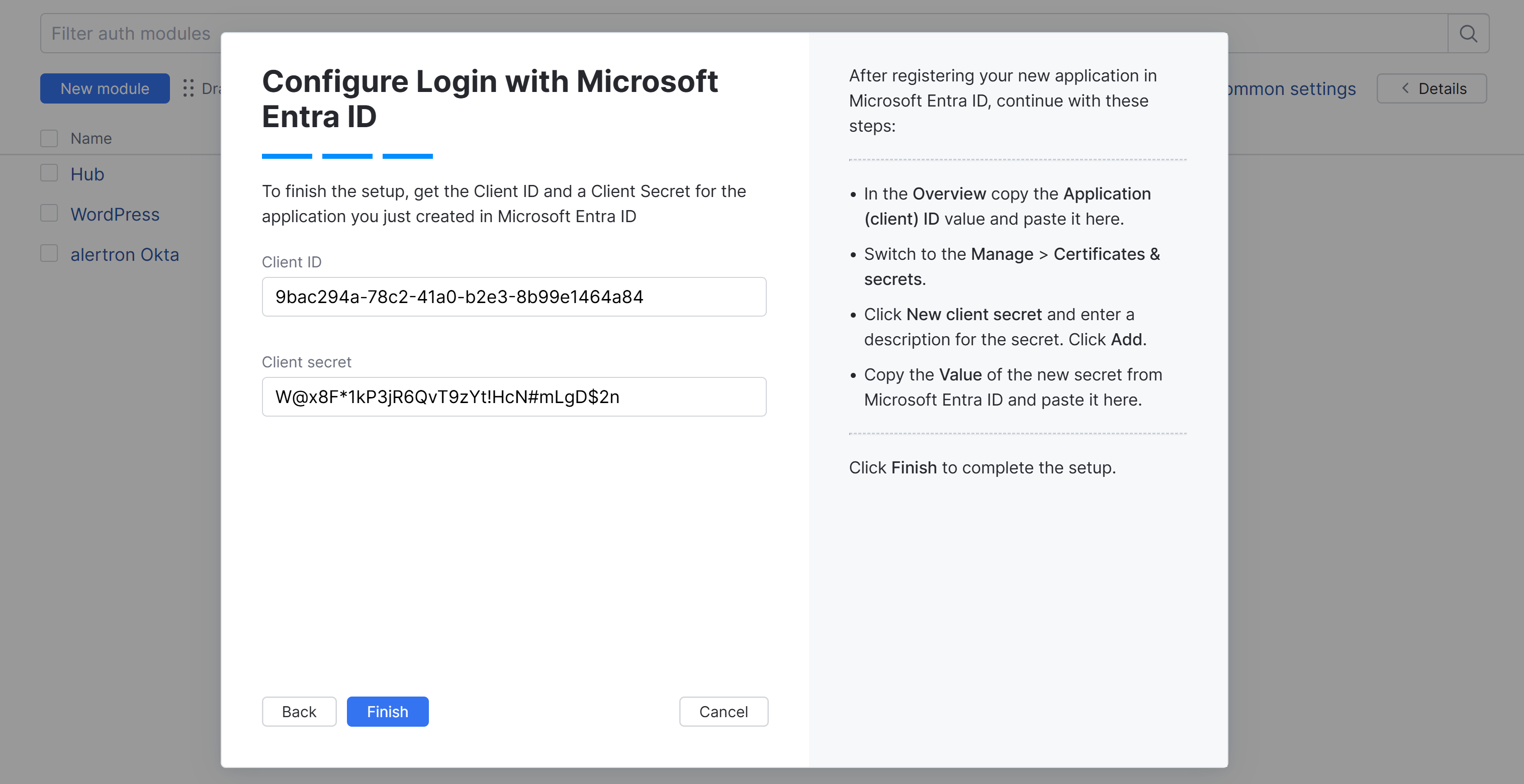 Set up a new Microsoft Entra ID authentication module as described on this page.