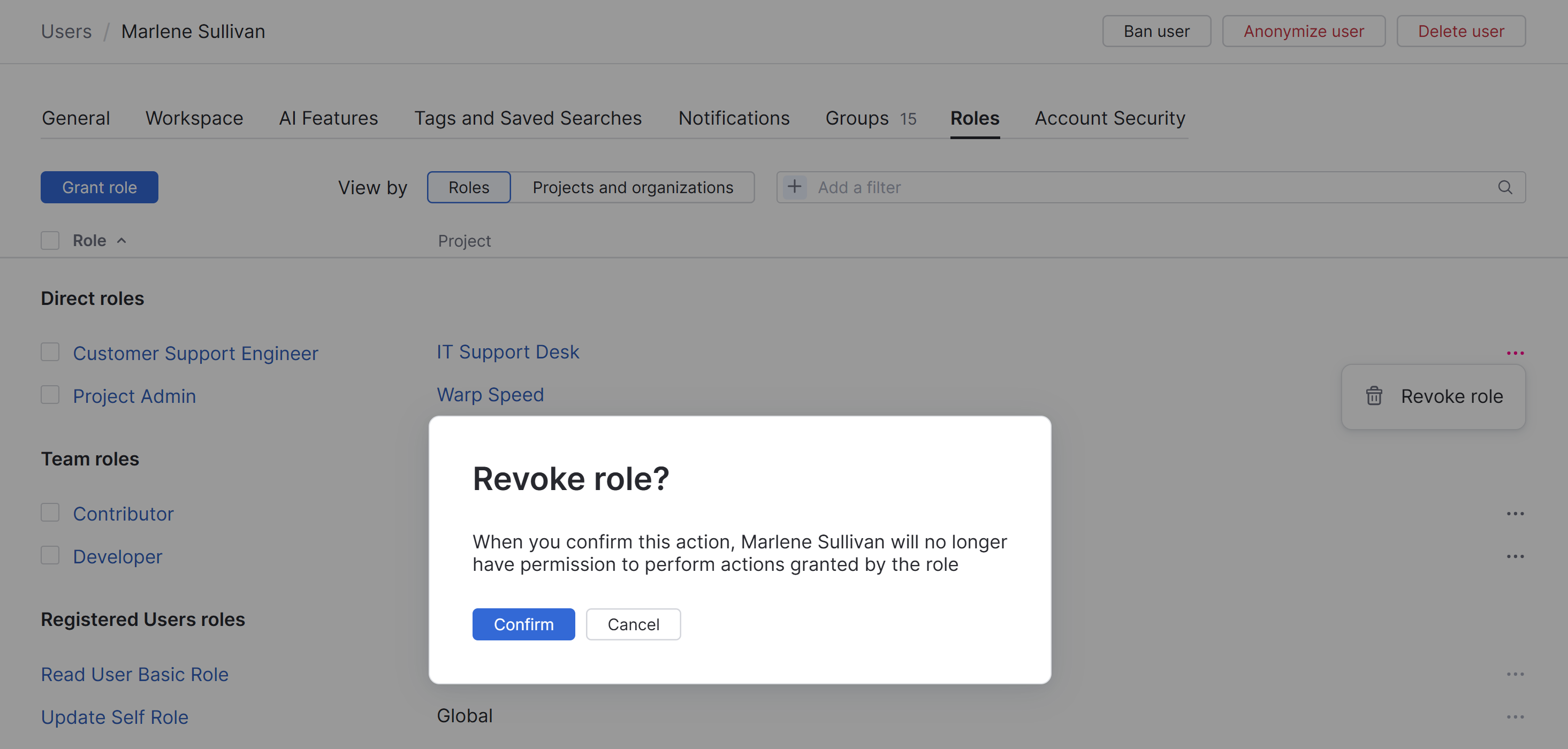 Click the Revoke role button.