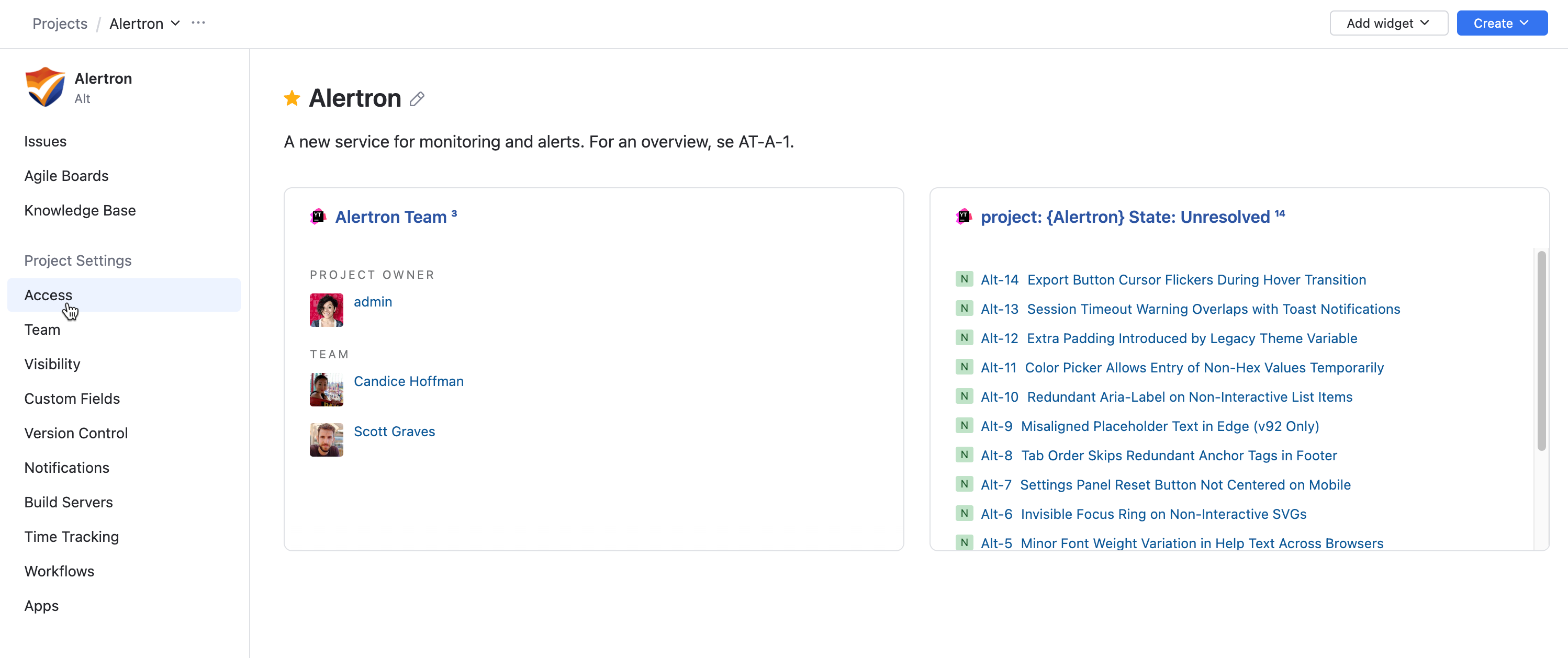 Add apps to the project. Apps give you the power to extend YouTrack with additional functionality tailored to your specific needs. You can integrate with other tools, add widgets to display important data, and share workflows. For more information, see Manage Apps.