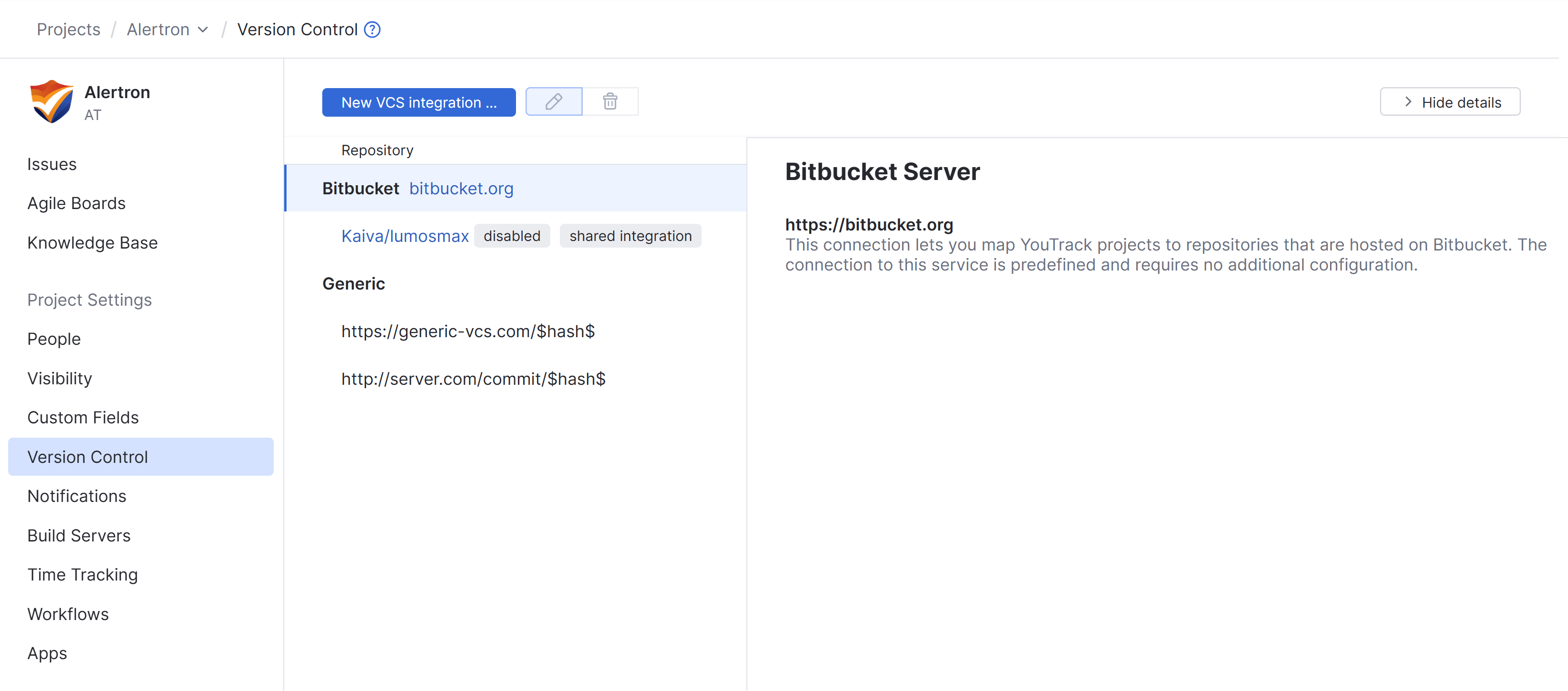 Integrate your YouTrack project with a repository in a self-hosted Bitbucket Server.