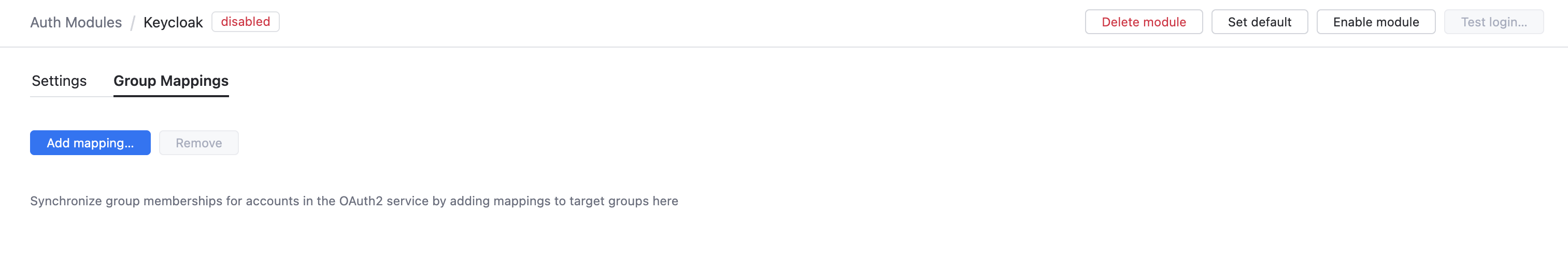 To verify that the Keycloak authentication module is set up correctly, test the connection.
