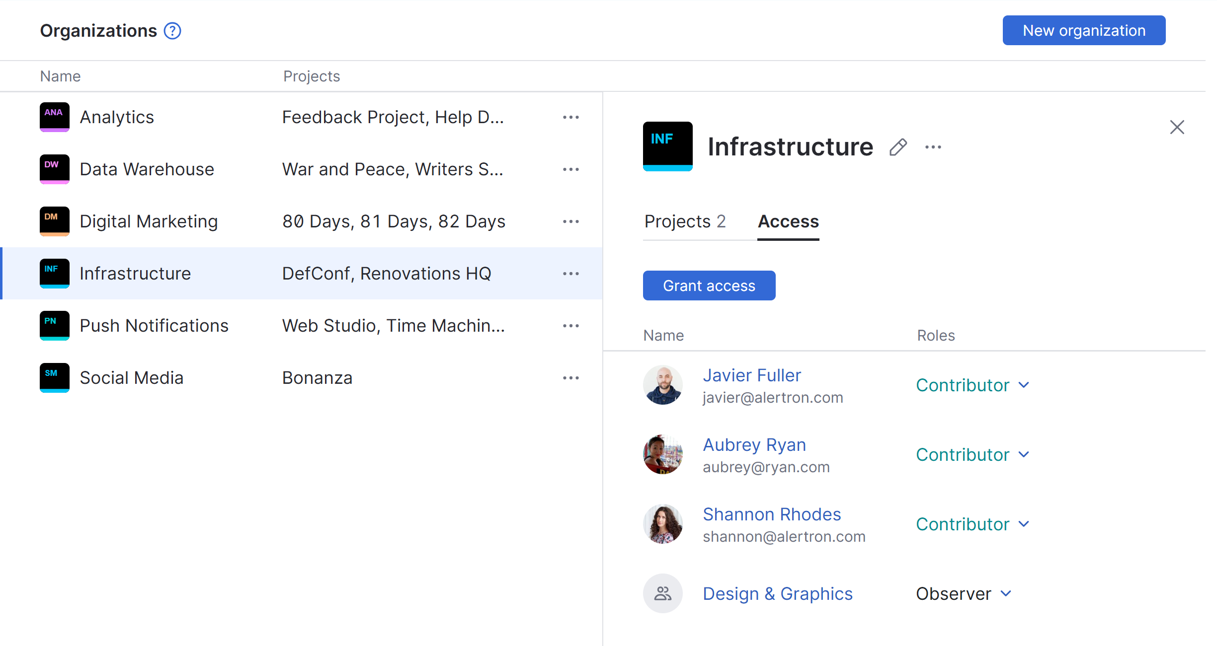 Access tab for an organization.