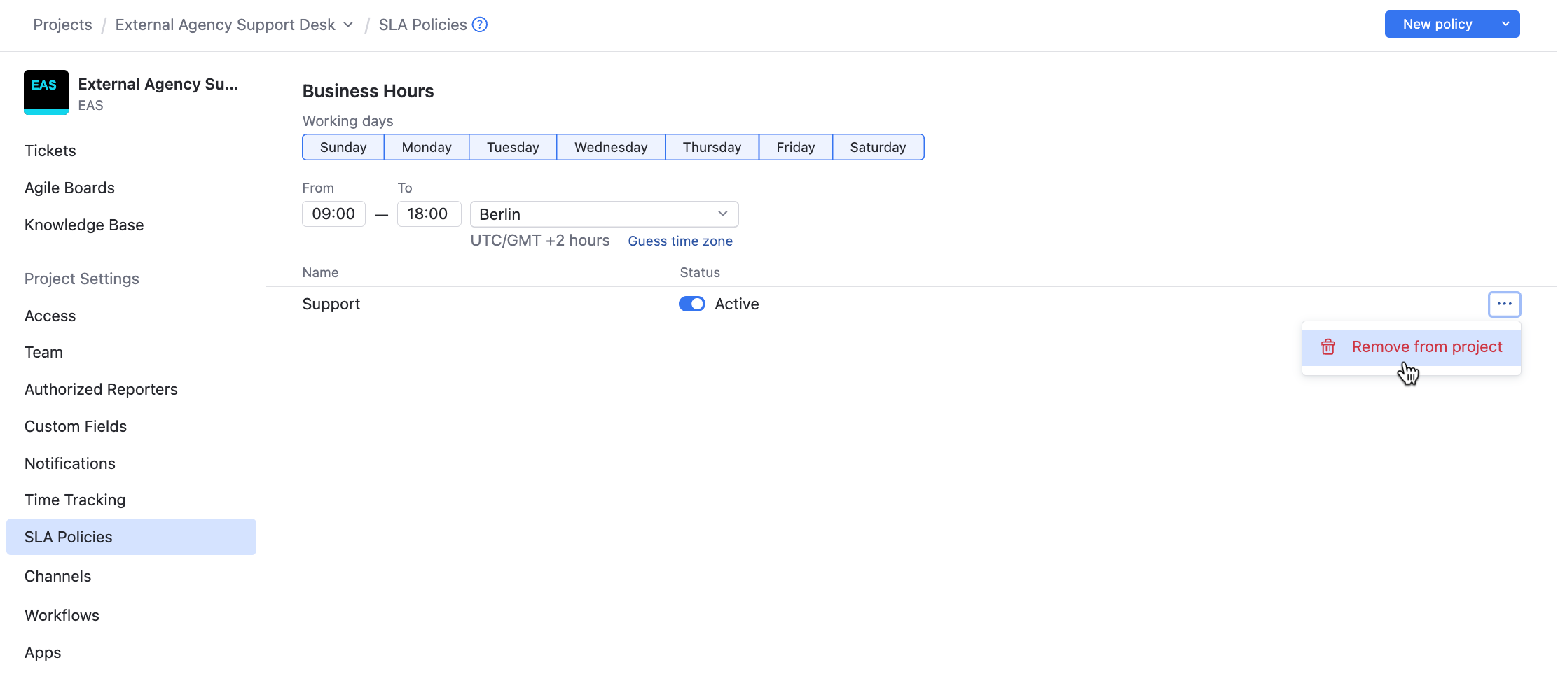You can set up one or more SLA policies for your helpdesk project.