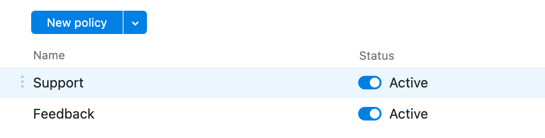 4. Expand the dropdown to the right of the New policy button