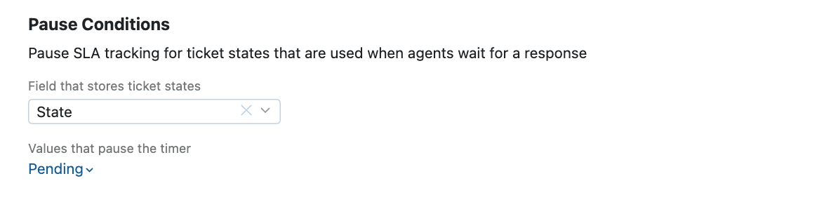 9. In the Pause Conditions section, select the custom field to define the ticket state.