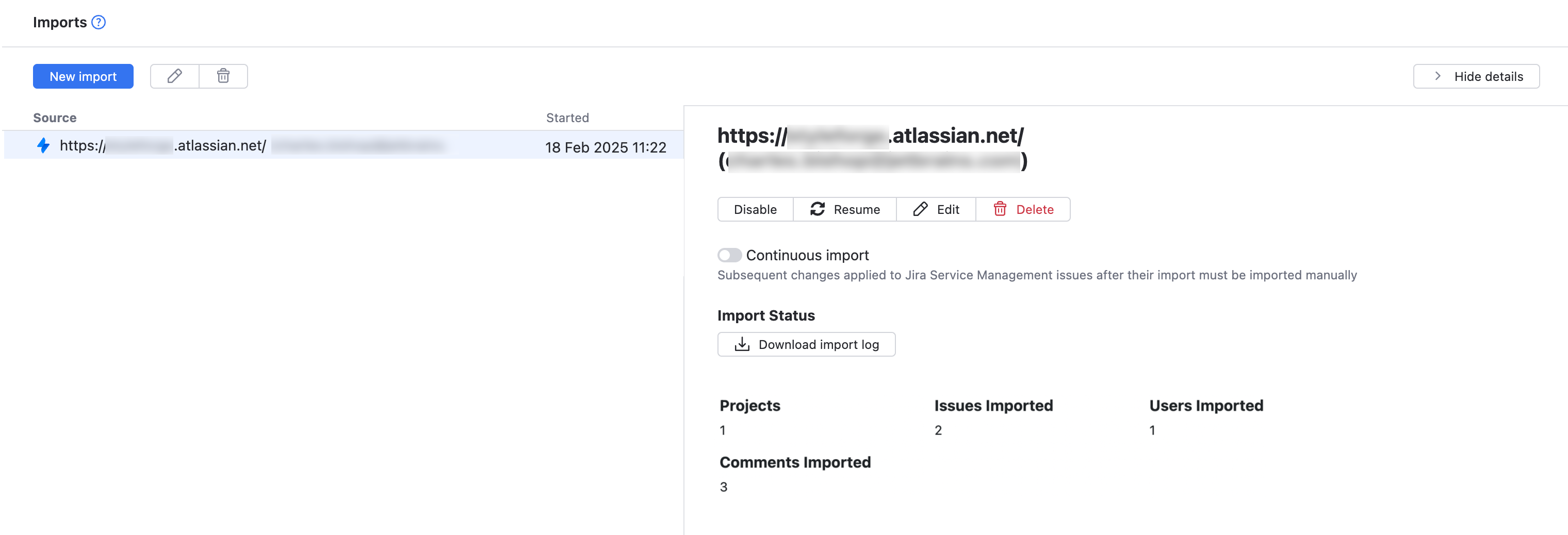 Continuous issue import from Jira Cloud is only recommended when the user base in the Jira instance is relatively static. If you want to import issues from a Jira Cloud instance on a continuous basis, we recommend that you leave the Continuous import setting switched off and follow this procedure instead: