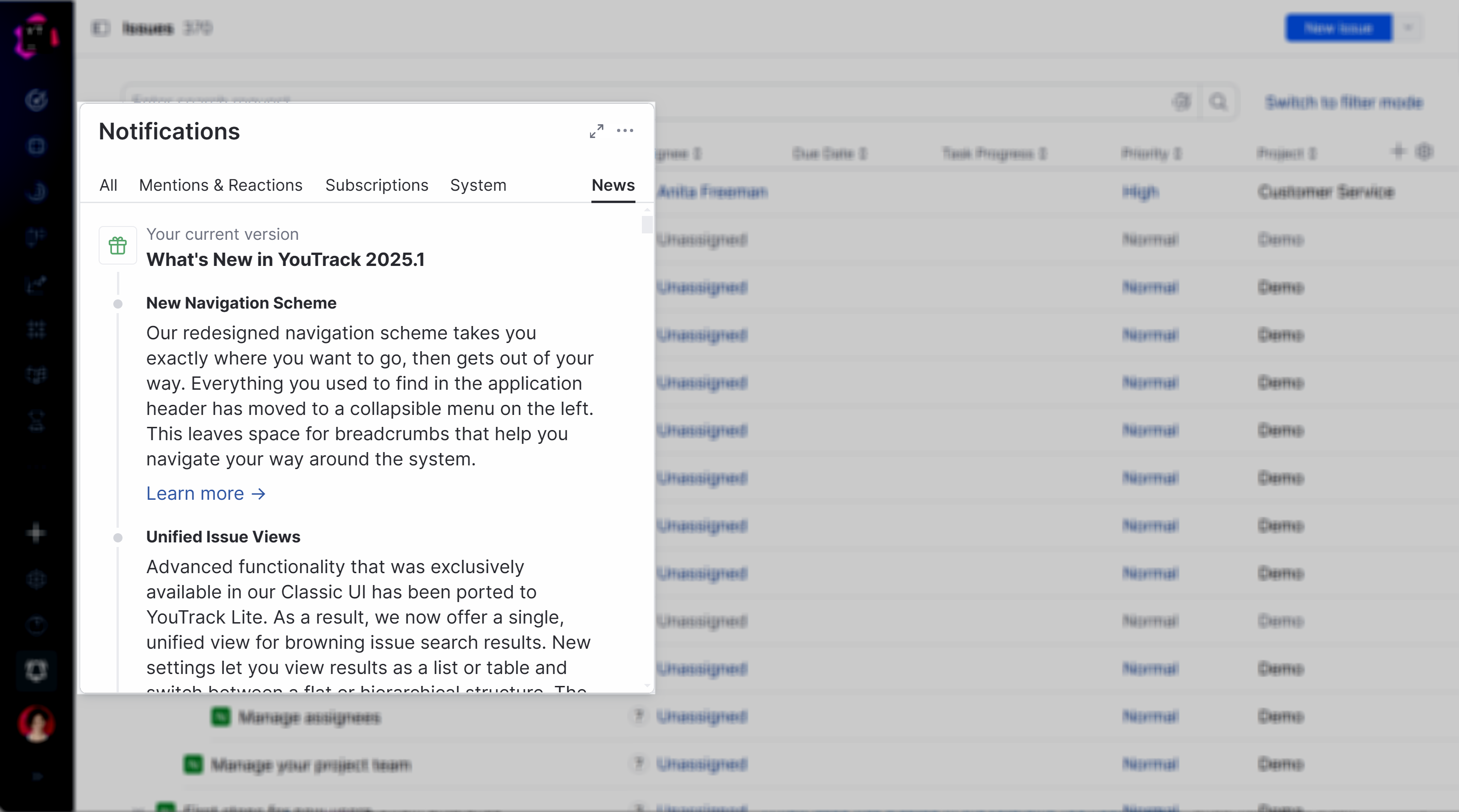 This feed provides short descriptions of major features that are included in each YouTrack release. Most features include a link to a related section of the documentation where you can learn how to put this feature to good use.
