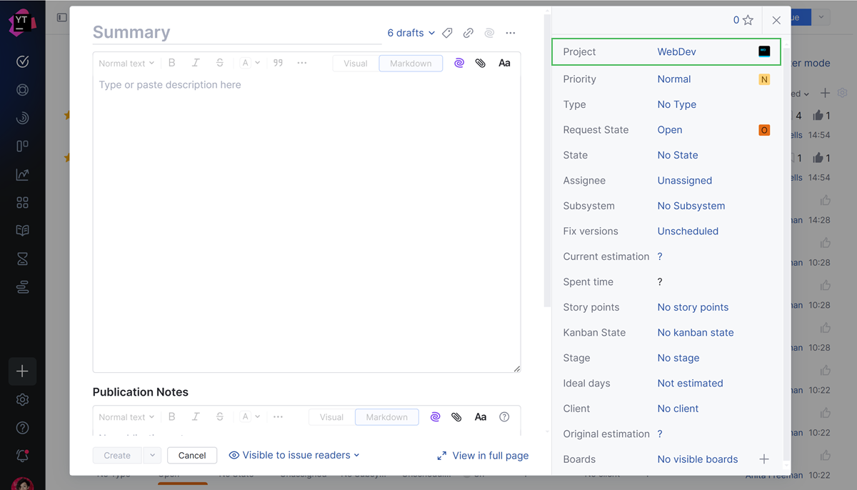 When you set the search context to a project, your search queries are restricted to issues in the selected project. As long as you are using a project for the search context, this project is set as the default value for the Project field in new issues.