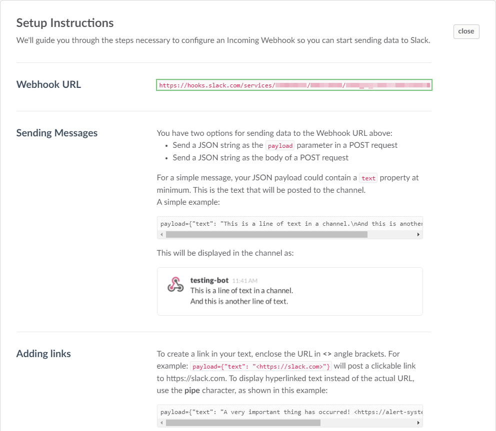 When you add an Incoming Webhook, Slack generates a Webhook URL.