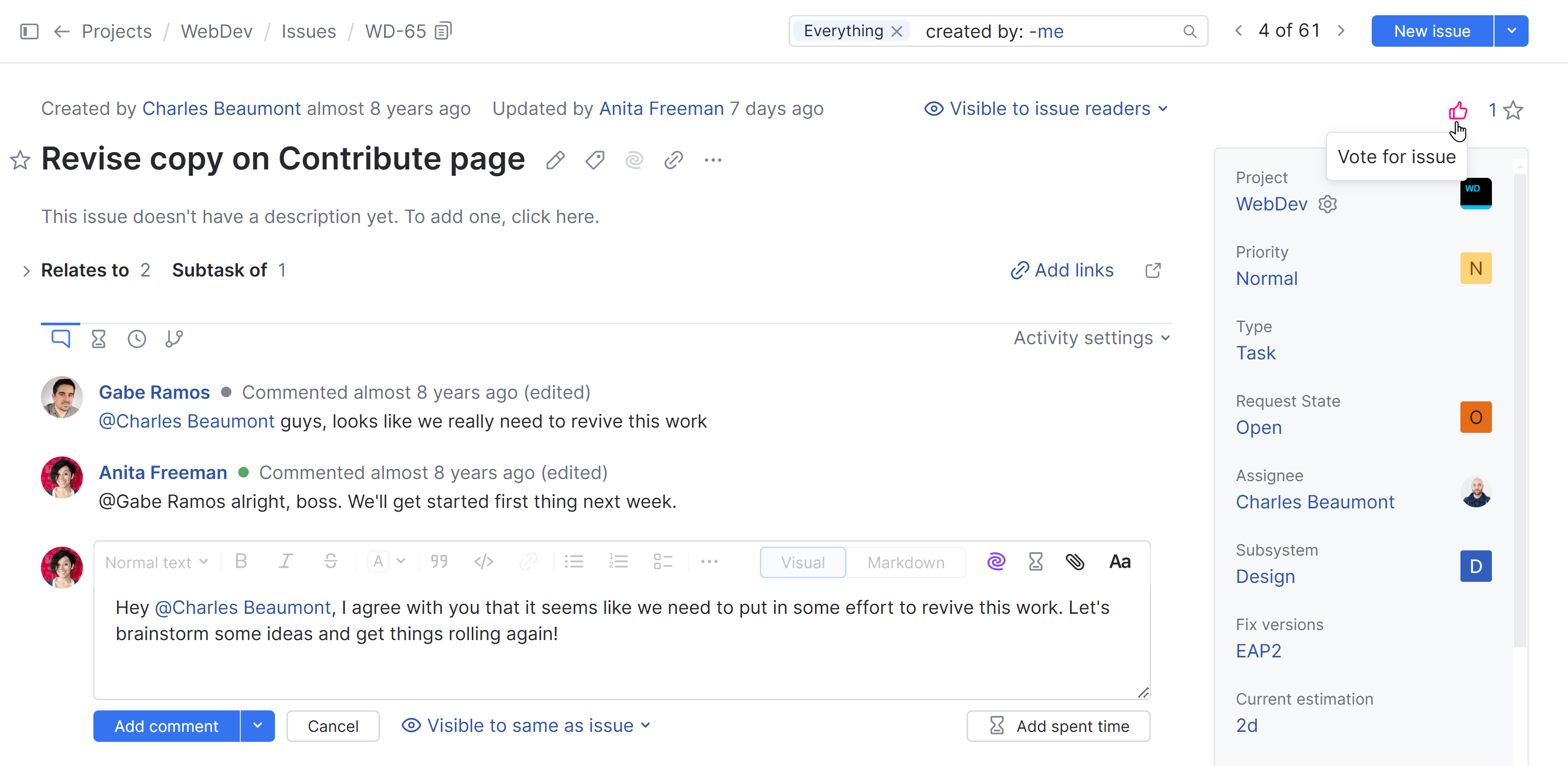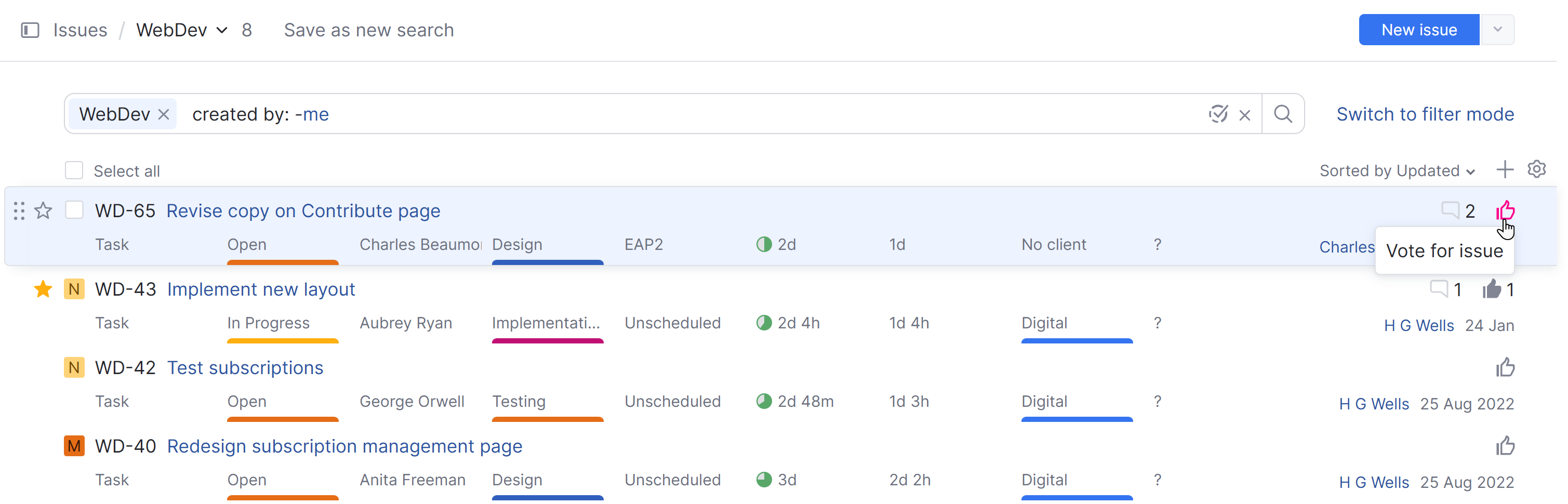 Votes are one way to measure the popularity of an issue. When you add a vote to an issue, you express your personal support.