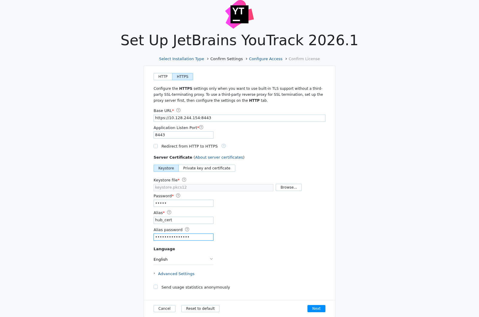 To share usage statistics with JetBrains, keep the Send usage statistics anonymously option enabled. This feature helps JetBrains track usage statistics to make YouTrack Server better. We never share collected data with any third party.